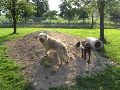 Hundehaus mit 6 Hundezimmern, links das kleine